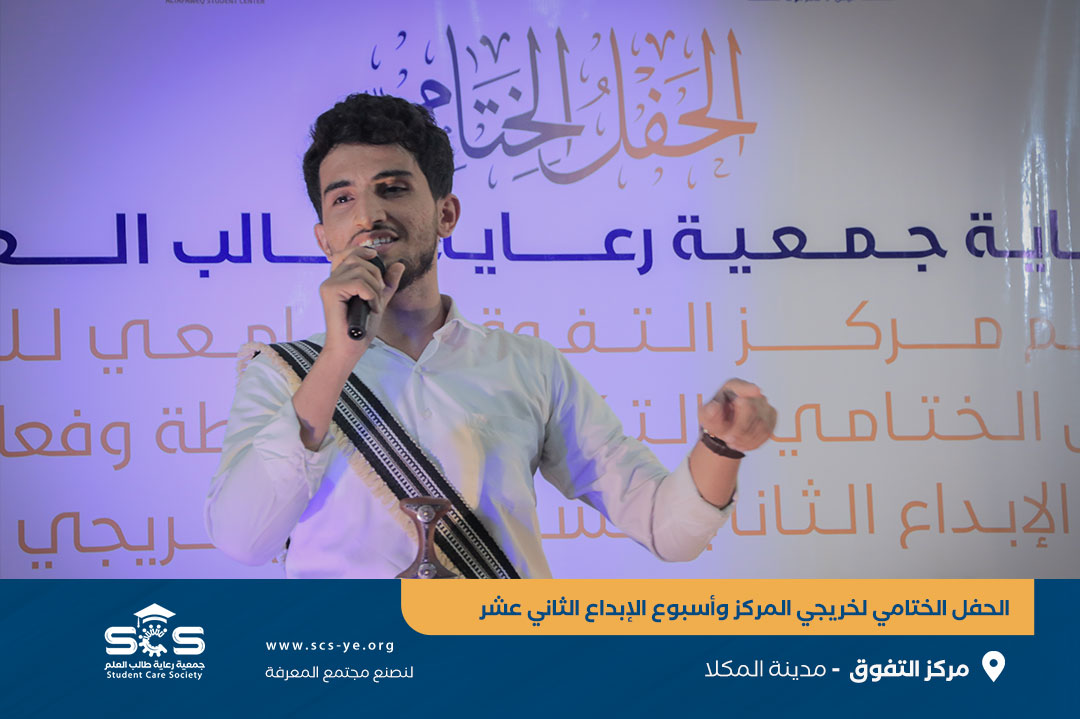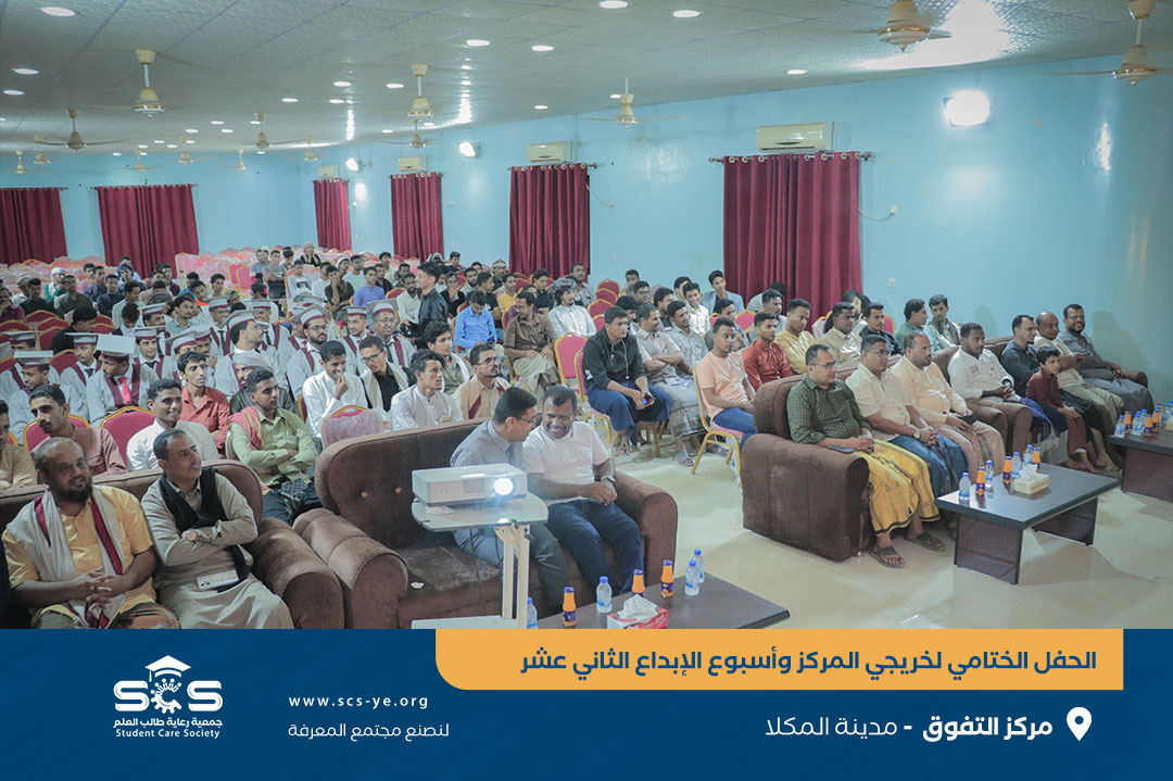احتفل مركز التفوق الجامعي للتنمية، التابع لجمعية رعاية طالب العلم، أمس باختتام فعاليات وأنشطة أسبوع الإبداع الثاني عشر " بعزم الرواد تُصنع الامجاد " واحتفى بتخرج 22 طالباً من المركز من مختلف التخصصات.