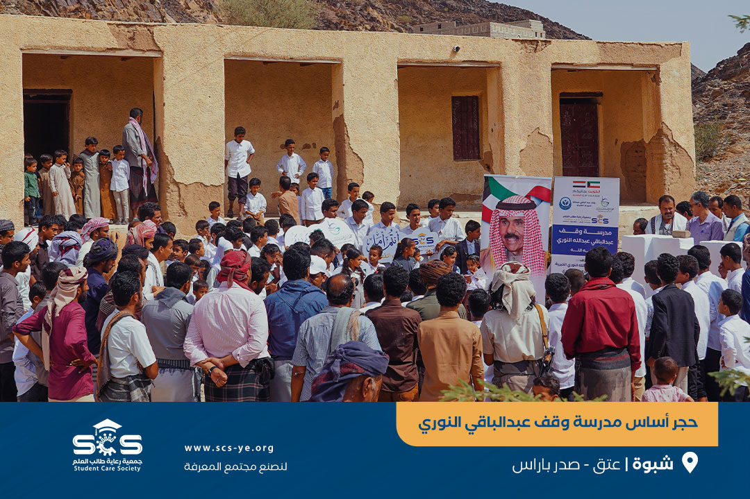 وضع مدير عام مكتب التربية والتعليم بشبوة الاستاذ سالم محمد حنش ومدير عام مديرية عتق الاستاذ عبدالله صالح الخليفي بمعية المدير التنفيذي لجمعية رعاية طالب العلم الاستاذ منيرعادل هادي، حجر الأساس لإنشاء مدرسة وقف عبدالباقي عبدالله النوري "يرحمه الله" للتعليم الأساسي بمحافظة شبوة منطقة صدر باراس بإشراف من جمعية الشيخ عبدالله النوري الخيرية وتبرع وقف عبدالباقي النوري الخيري وتنفيذ جمعية رعاية طالب العلم.
