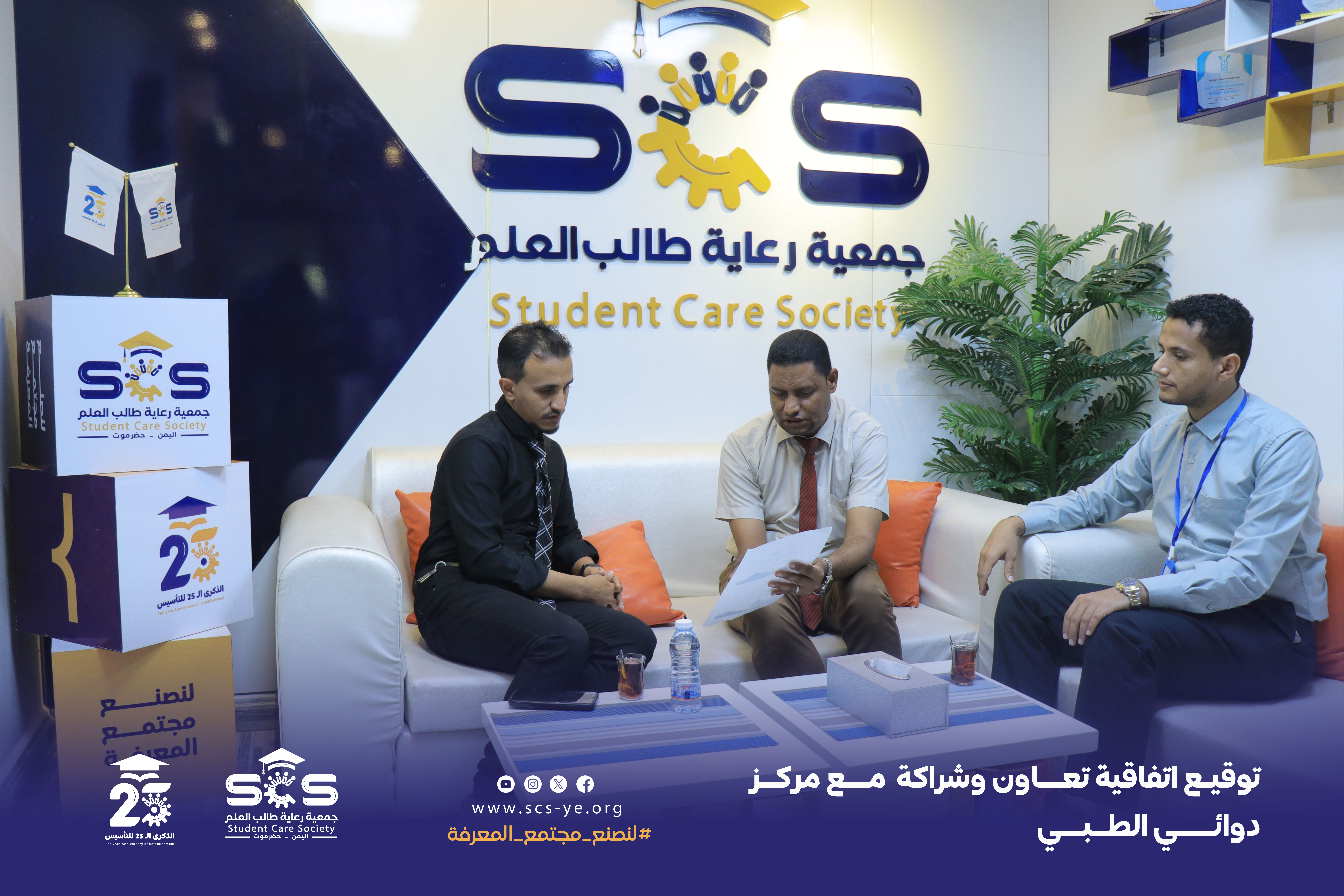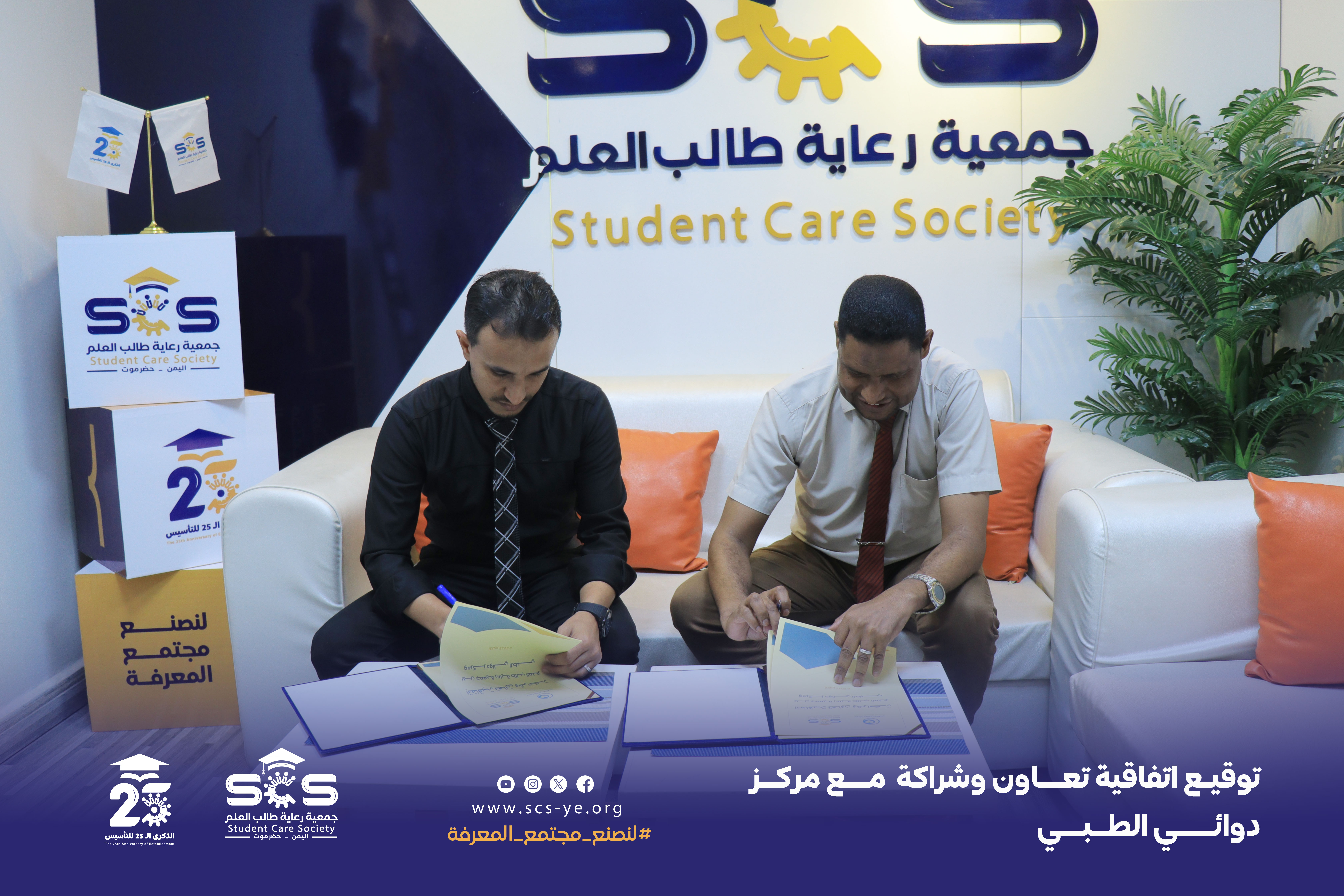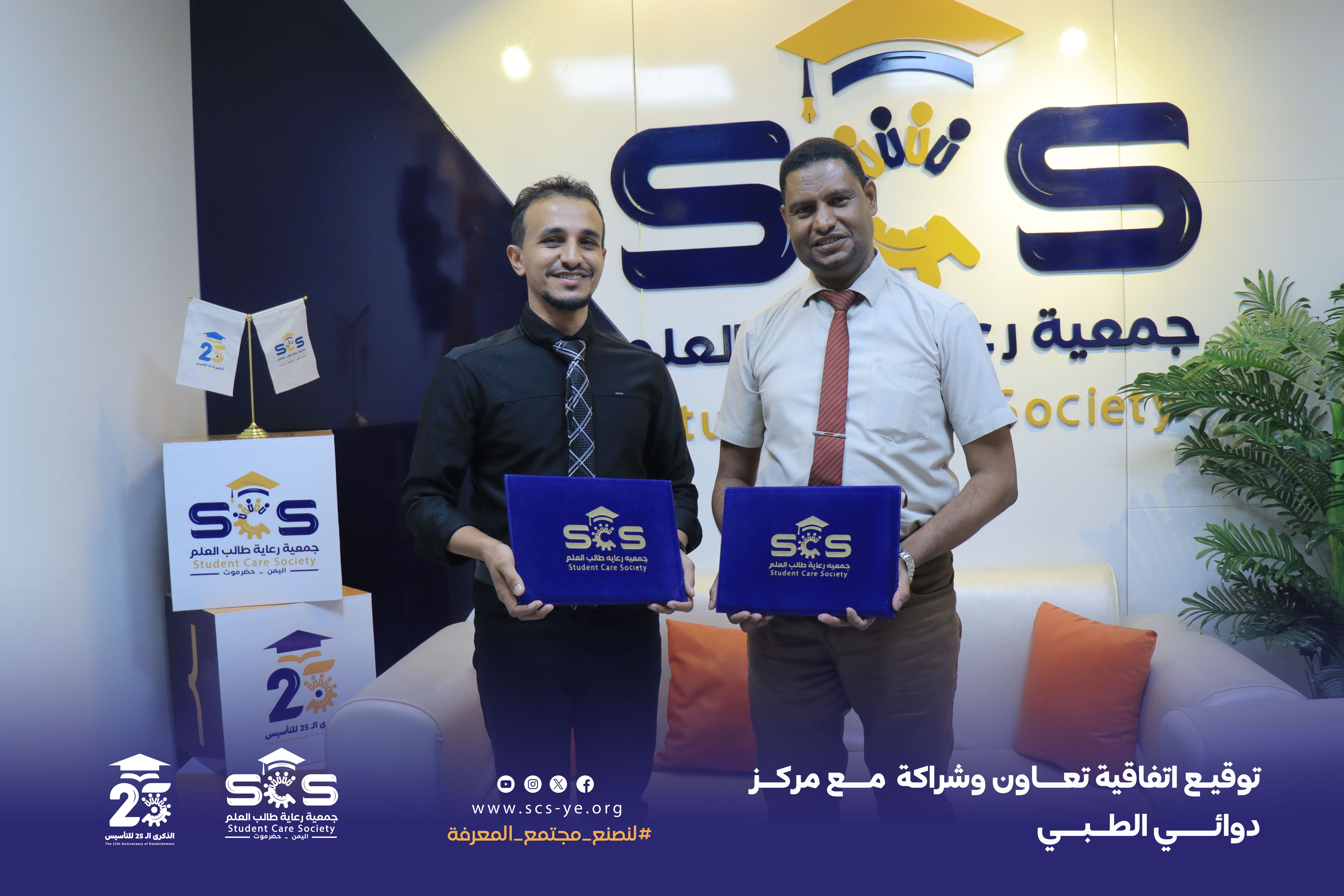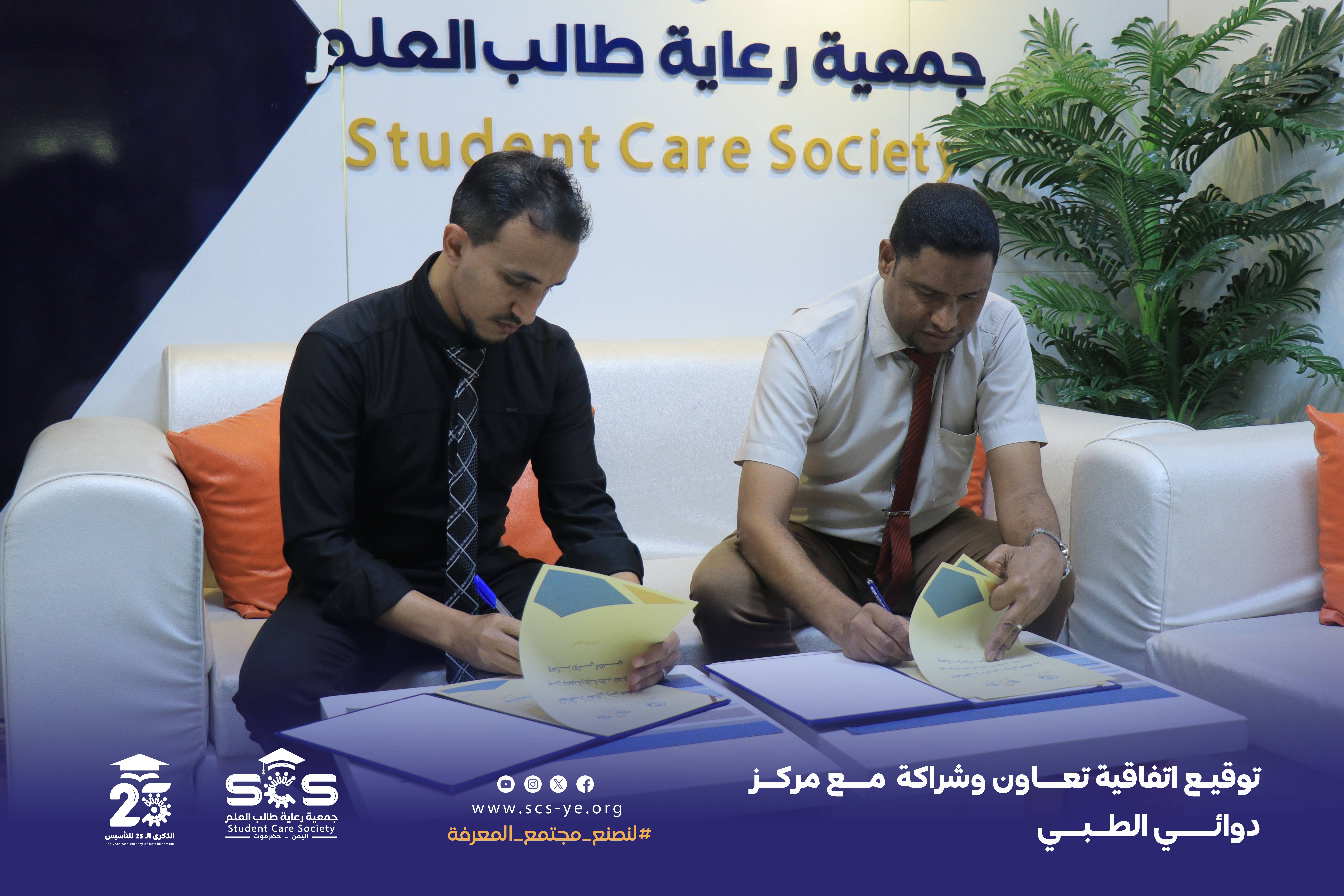 وقّع الاتفاقية عن الجمعية المهندس منير عادل هادي المدير التنفيذي وعن المركز الأستاذ سالم باهيثم مدير مركز دوائي الطبي.